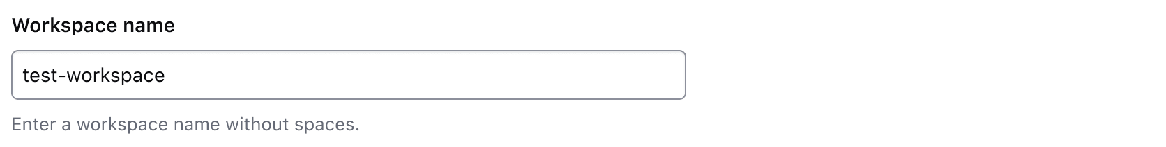 A workspace name input with the text "work" entered. If the character count is showing current length, it reads "4 characters entered". If maximum length, it reads "21 characters remaining". If minimum length, it reads "1 character remaining".